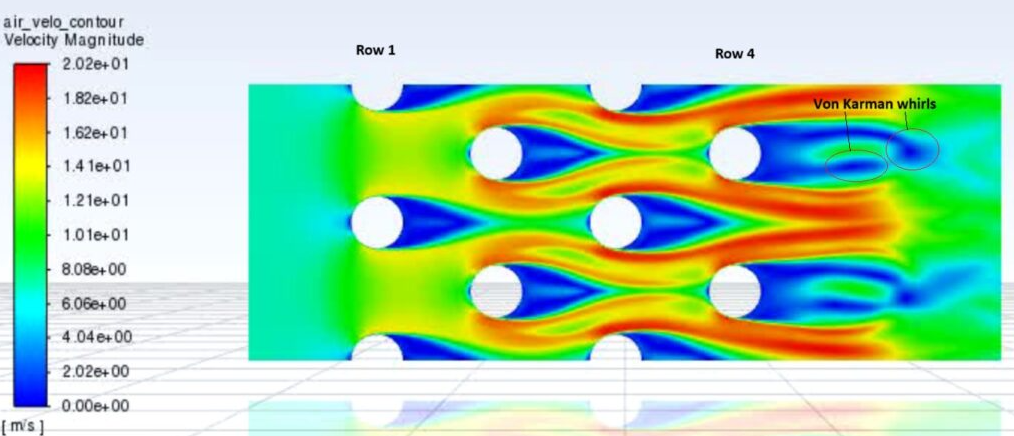 Projekt dotyczy wyjaśnienia mechanizmów wymiany ciepła po stronie powietrza w lamelowych wymiennikach ciepła oraz w nowoczesnych strukturach typu TPMS (np. Gyroid), gdzie przepływ wokół cylindrów prowadzi do powstawania złożonych struktur wirowych. Jak pokazano w, w ostatnim rzędzie wymiennika obserwuje się silny wzrost współczynnika przejmowania ciepła/Nusselta, którego fizyczne przyczyny – związane z nieustalonym przepływem, oderwaniem wirów i wysokimi liczbami Reynoldsa – pozostają niejasne, mimo licznych korelacji Nu dla różnych pakietów rur.