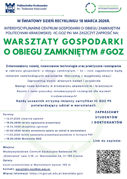 Warsztaty odbywać się będą w dniu 18 marca 2026 r. w budynku Działowni Politechniki Krakowskiej.