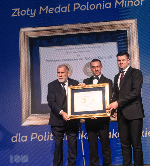 Gala była także okazją do uhonorowania uczelni Złotym Medalem Polonia Minor. Honorowe wyróżnienie dla PK, przyznane za szczególne zasługi dla Małopolski oraz wkład w rozwój idei samorządności, marszałek Małopolski Łukasz Smółka wręczył rektorowi prof. Andrzejowi Szaracie.