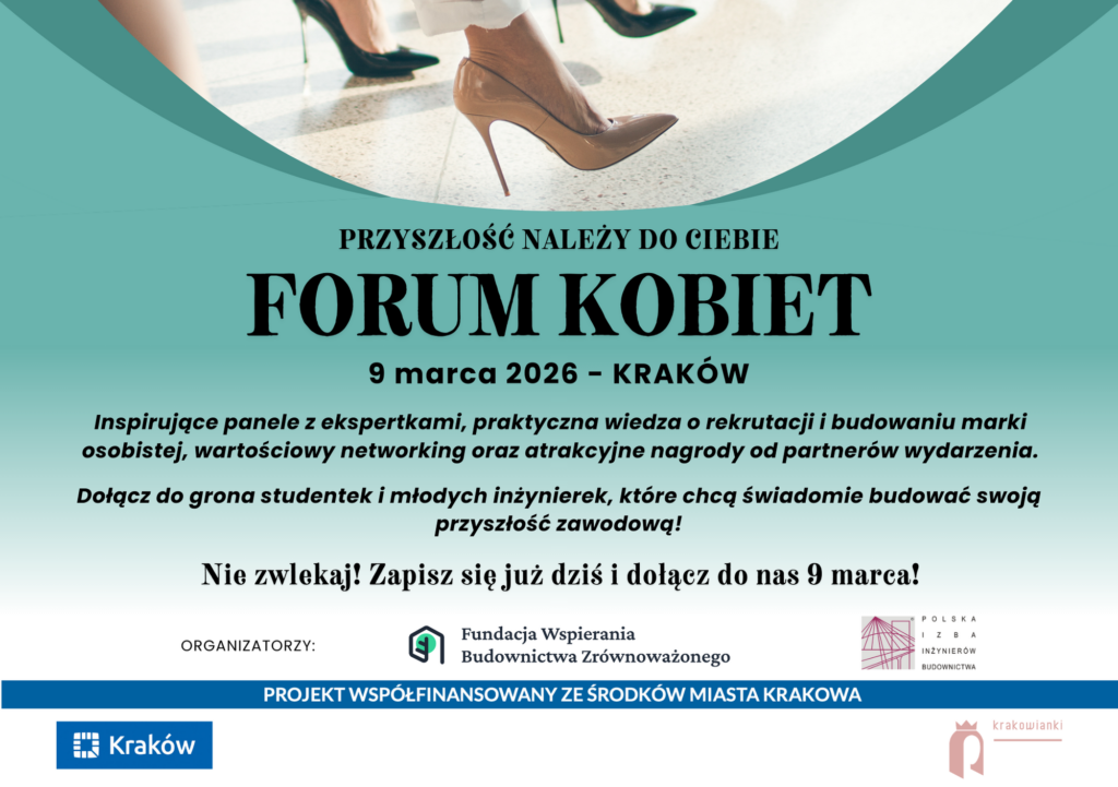 Już 9 marca 2026 r. w godzinach 9:00-12:00 na kampusie Politechniki Krakowskiej w budynku Działowni odbędzie się wyjątkowe wydarzenie – Forum Kobiet 2026 pod hasłem: ✨ Przyszłość należy do Ciebie ✨