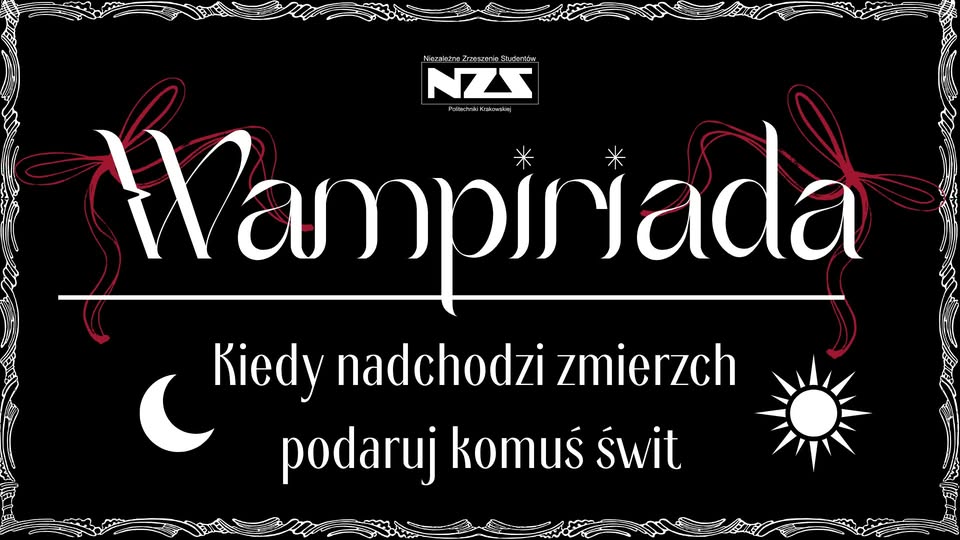 Zmierzch zapada… a razem z nim wraca Wampiriada – studencka akcja honorowego krwiodawstwa. To już ćwierć wieku, odkąd studenci ratują życie – i Ty możesz być częścią tej historii. Nie potrzebujesz peleryny ani brokatowej skóry, żeby zostać bohaterem – wystarczy Twoja krew. Oddaj ją i spraw, by ktoś inny mógł zobaczyć świt.