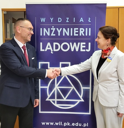 Konsul podziękował za wsparcie udzielane studentom z Ukrainy, którzy od wybuchu wojny mogą bezpłatnie studiować na naszym Wydziale. Podkreślił znaczenie kształcenia przyszłych kadr w obszarach kluczowych dla odbudowy ukraińskiej gospodarki – budownictwa oraz transportu.