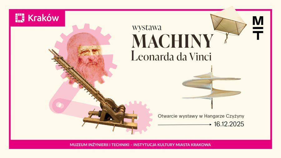 W części poświęconej optyce można wejść do sali lustrzanej albo zobaczyć projektor. W mechanice znajdują się: podnośnik, wysuwana drabina i inne konstrukcje. W sekcji drogi czekają pomysły związane z ruchem — na przykład krokomierz czy most łukowy. Potem płynnie przechodzi się do motywu wody, gdzie zobaczyć można m.in. projekt stroju nurka. W dziale wojny pojawiają się konstrukcje takie jak czołg czy pociski ostrołukowe. Na końcu wystarczy spojrzeć w górę — tam wiszą projekty związane z powietrzem, w tym słynny koncept helikoptera.