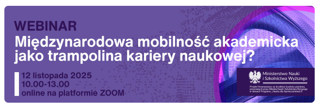 Narodowa Agencja Wymiany Akademickiej (NAWA) oraz Ośrodek Przetwarzania Informacji – Państwowy Instytut Badawczy (OPI PIB) zapraszają na webinar pt. „Międzynarodowa mobilność akademicka jako trampolina kariery naukowej?”, który odbędzie się 12 listopada 2025 r. (środa) w godzinach 10:00–13:00 w formule zdalnej (platforma ZOOM).
