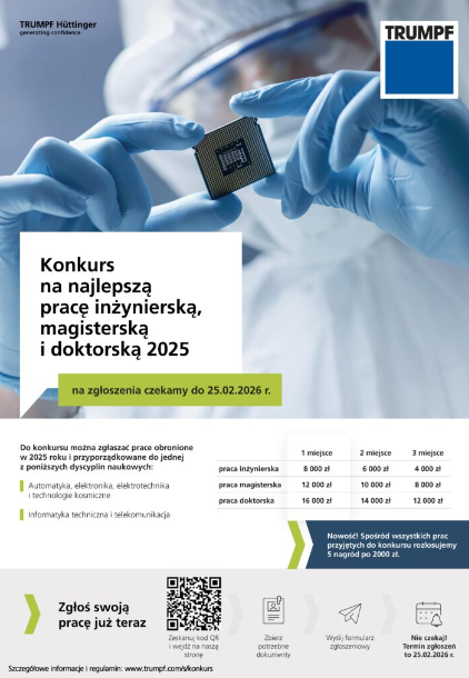 Odwiedź naszą stronę konkursową https://www.trumpf.com/s/konkurs, gdzie znajdziesz regulamin i wszystkie potrzebne informacje. Zapraszamy również do kontaktu mailowego: konkurs@trumpf.com