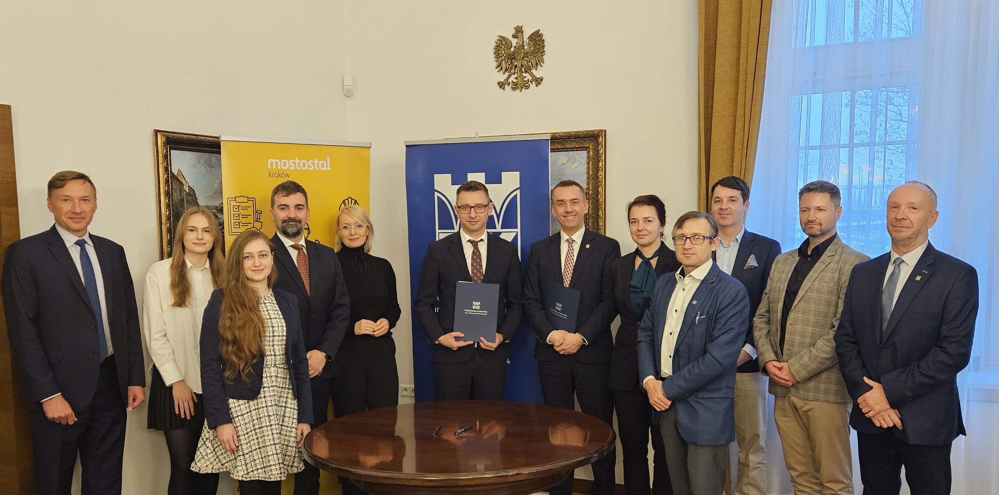 Firmę Mostostal Kraków S.A. podczas podpisania umowy o współpracy z Politechniką Krakowską reprezentowali: Jacek Lech, prezes zarządu, Grzegorz Cyborowski – koordynator Projektu Rozwojowego Marta Brzuchacz, kierownik Działu Personalnego, Paweł Śmigla, członek zarządu oraz kierownik Działu Jakości Łukasz Firydus. Ze strony Politechniki w wydarzeniu uczestniczyli: rektor prof. Andrzej Szarata, dr hab. inż. Lucyna Domagała, dziekan Wydziału Inżynierii Lądowej, dr inż. Paulina Zajdel (WIL PK) prof. Wiesław Zima i dr hab. inż. Artur Cebula (Wydział Inżynierii Środowiska i Energetyki), dr hab. inż. Krzysztof Mroczka, prof. PK (Wydział Inżynierii Materiałowej).