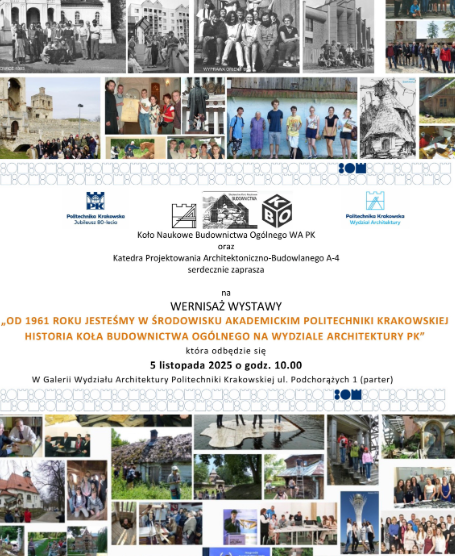 Szczegółowe informacje dostępne na stronie arch.pk.edu.pl oraz na afiszu.