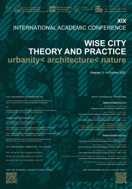 W 2023 roku rozpoczęliśmy nowy cykl tematyczny, odnosząc się do wątku Miasta Mądrego – Wise City – w teorii i praktyce. Wobec wielu wyzwań współczesności, takich jak kryzysy militarne, zmiany demograficzne, masowe migracje, czy globalny kryzys klimatyczny, miasta wciąż ulegają mniej lub bardziej kontrolowanym przeobrażeniom. Planowana przez nas tegoroczna konferencja odnosi się do potrzeby poszukiwania rozwiązań wielu aspektów funkcjonowania i projektowania współczesnego miasta. A także redefinicji podstawowych pojęć związanych z urbanistyką, wobec wspomnianych, dynamicznych zmian jakim podlegają miasta, miejskie obszary funkcjonalne i metropolie.
