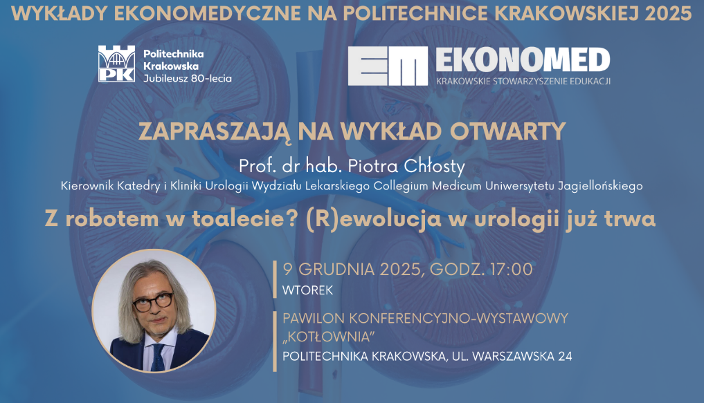 Spotkanie z profesorem Piotrem Chłostą odbędzie się w najbliższy wtorek 9 grudnia 2025 r. o godz. 17:00 w Pawilonie Konferencyjno-Wystawowym „Kotłownia” na terenie Kampusu Głównego PK przy ul. Warszawskiej 24. W roku 2025 to będzie ostatni wykład organizowany przez Stowarzyszenie Edukacji EKONOMED wspólnie z Politechniką Krakowską, ale nie ostatni w ogóle.
