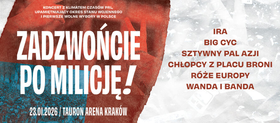 „Zadzwońcie po milicję” to koncert największych polskich gwiazd rocka z klimatem PRL-u, upamiętniający okres stanu wojennego i pierwsze wolne wybory w Polsce. Wydarzenie jest hołdem dla wszystkich, którzy w latach 70. i 80. odważyli się głośno mówić i działać na rzecz wolnej Polski.